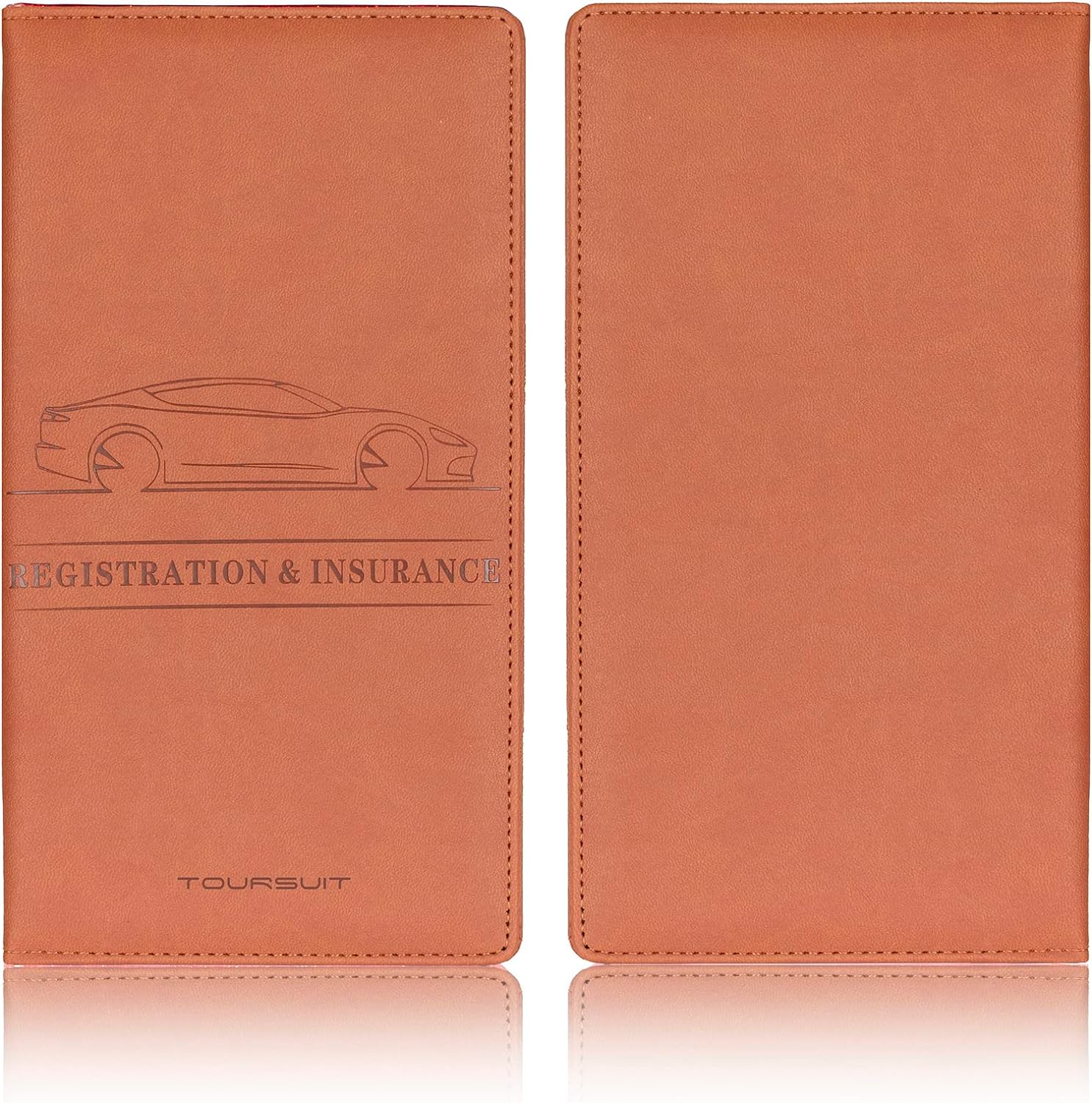 TOURSUIT Car Registration and Insurance Card Holder, Vehicle License Document Glove Box Compartment Organizer, Interior Car Accessories for Women Men Teens (Brown)