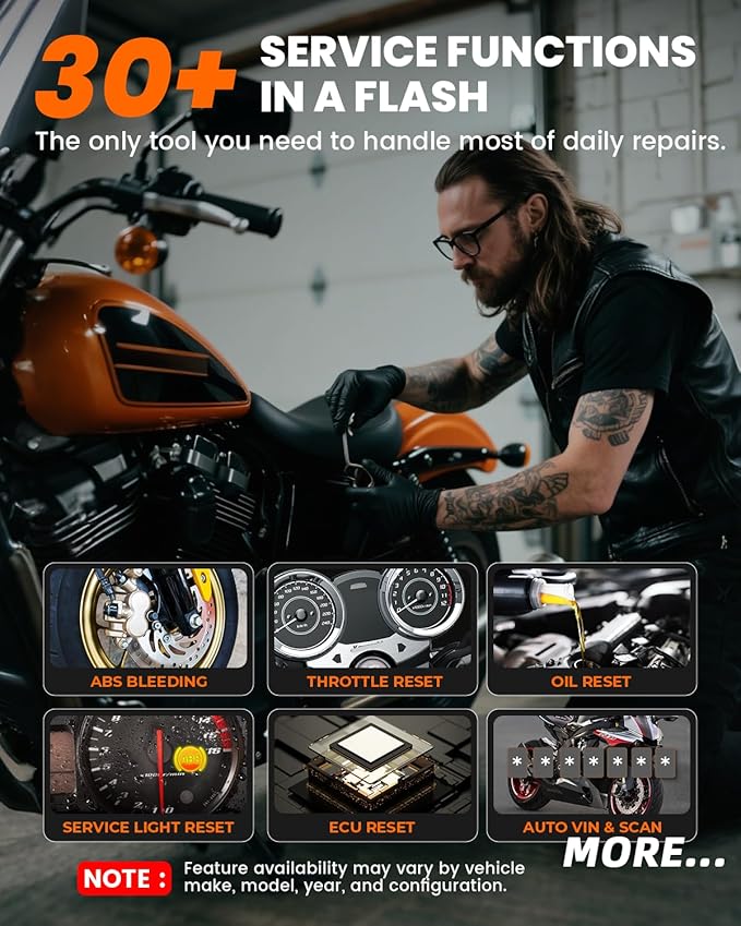 - For Harley-Davidson Service and Programming: Reset service/oil lights, bleed ABS, reset ECU, adjust throttle, and configure TPMS. Access features for Harley-Davidson such as idle speed control, cruise control, EITMS, key FOB programming, lighting setup, radio/Bluetooth pairing, and module replacement, giving you dealer-level functions at home