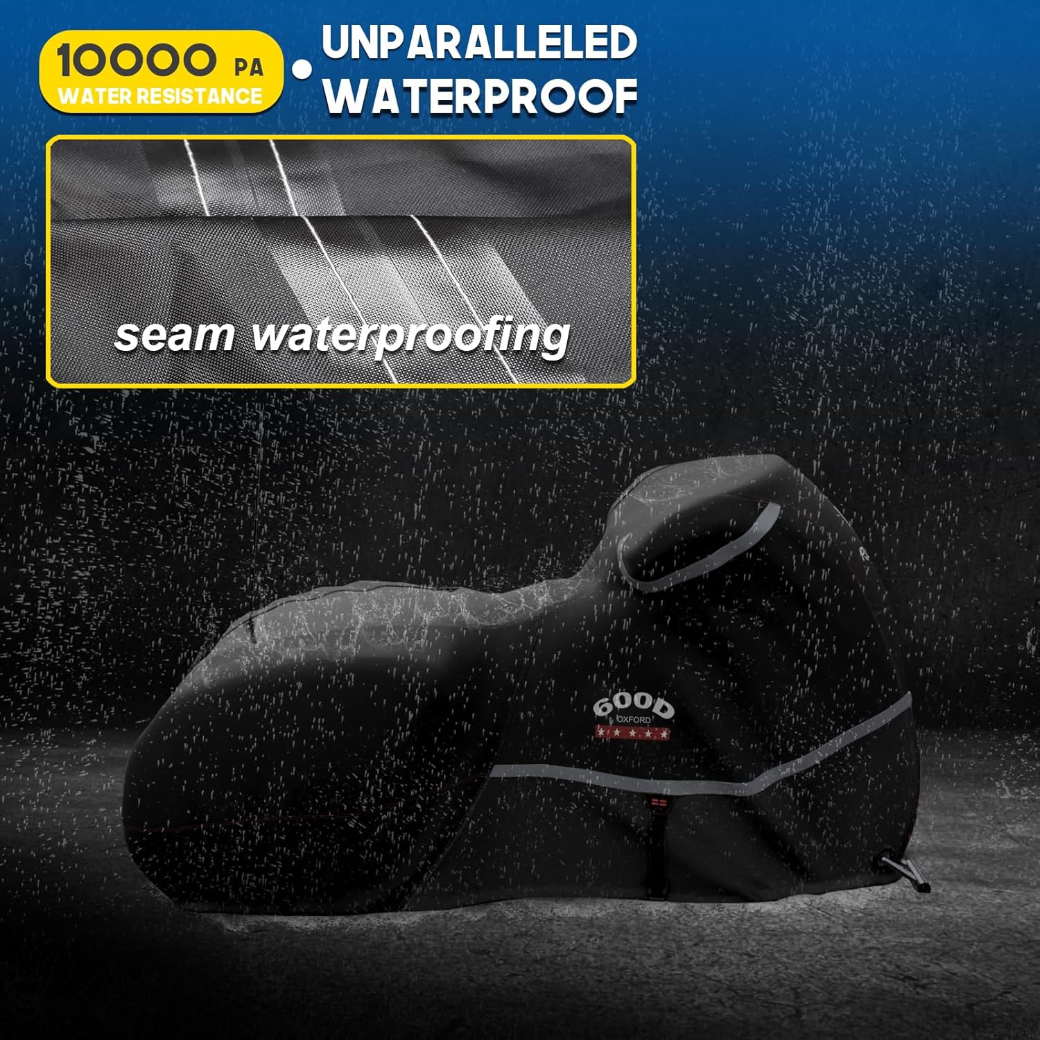 - 【3D CUT】This cover is designed for motorcycle models with side boxes.SIZE: 107"L * 43"W * 55"H,Suitable for most motorcycle of touring models,such as Harley Davidson ,HONDA,INDIAN,DUCATI,BMW,SUZUKI,Triumph Tiger,KTM,YAMAHA,KAWASAKI.
