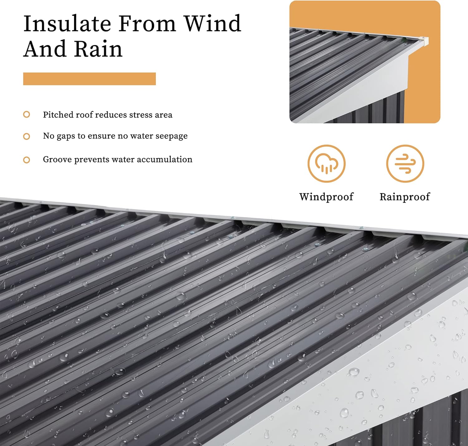 - Multi-Application Outdoor Shed: The metal shed can be used as storage for your garden and backyard, which can better store your tools. You can use this storage shed as a pet house, which can offer a safer and warmer room for pets. This storage shed will satisfy your different requirements in the backyard.