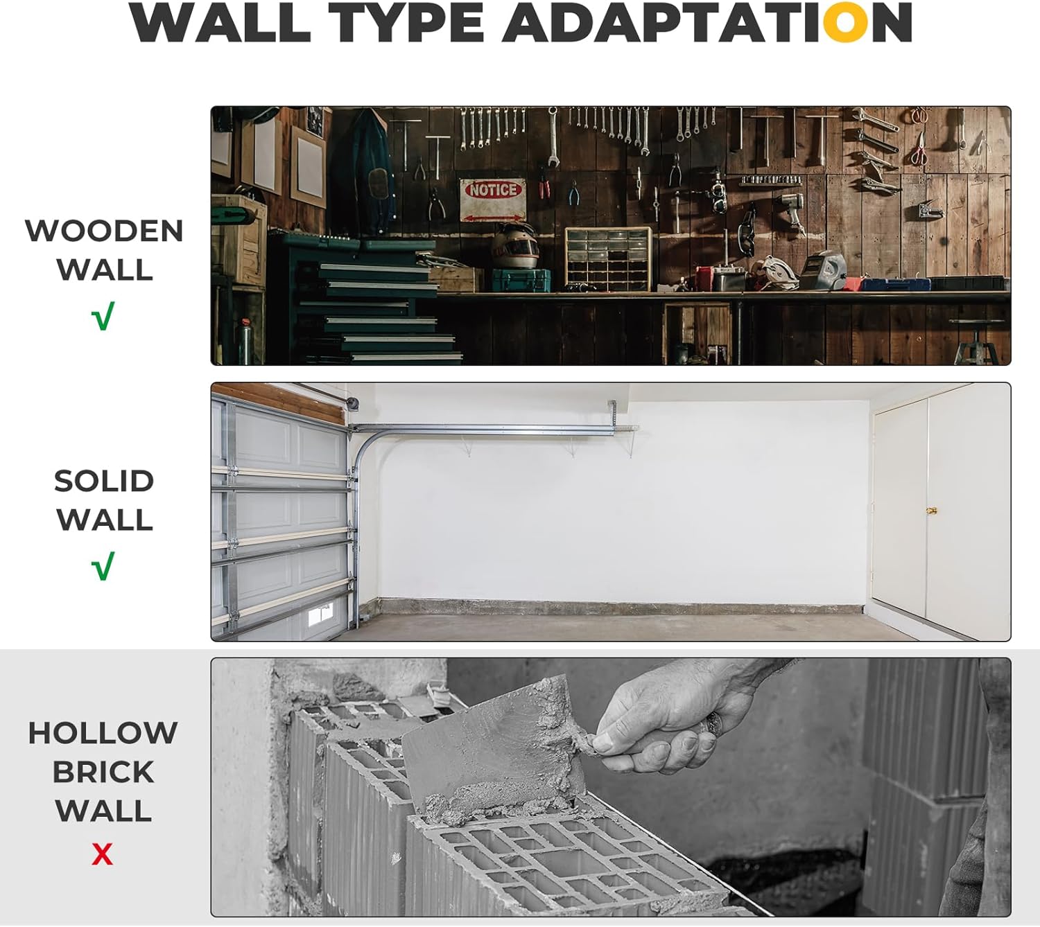 - STRONG STABILITY: The wall mounted is made of high-quality Q235 steel and 6063 aluminum-alloy materials, which are durable and resistant to deformation and corrosion. It can be installed on wood and solid walls. After testing, its continuous bearing capacity can reach up to 300 lbs. (Please note that it is not recommended to install it on a wall built of hollow bricks!)