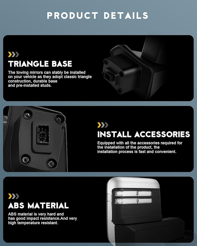 - Easy to install: just simply connect the plugs of the trailer towing mirror to the corresponding power cord, no drilling or modifications are required(professional installation would be highly recommended)