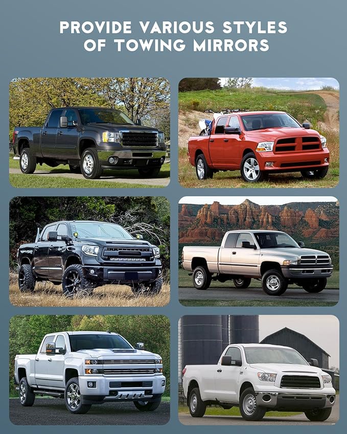 - Note: Please check if your vehicle has the same functions as that of towing mirrors, such as turn signal, otherwise some functions of towing mirrors will be disabled when the vehicle does not possess the corresponding functions