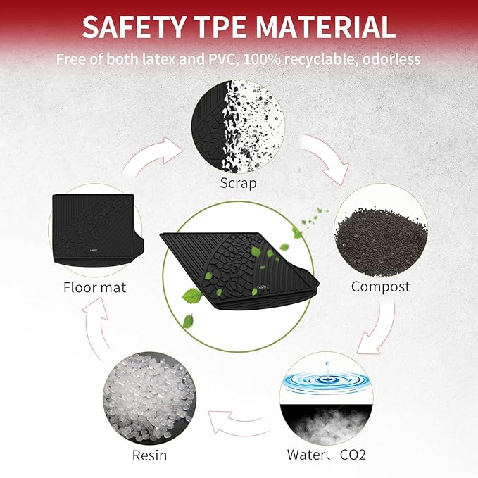 - ENVIRONMENT FRIENDLY- Our car liners use elastic TPE (Thermoplastic Elastomer) for a soft touch and exquisite finish. It's skid-proof and recyclable.