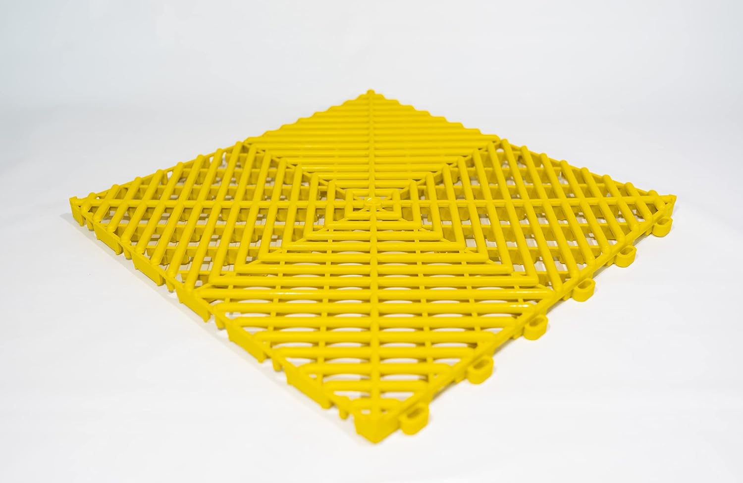 Interlocking Soft PVC Modular Garage Flooring Tile - 12"x12" | 5 Count - Pool Patio Floor, Ideal for Indoor and Outdoor Use, Interlocking Drainage Mats (Yellow, 12 x 12)