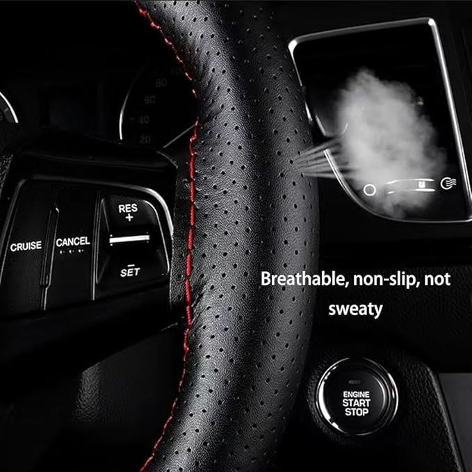 - GOOD BREATHABILITY. The steering wheel cover made of moist and soft leather has the characteristics of sweat absorption, excellent long time driving and dry touch. The whole piece of PU leather without seams is more complete, more delicate and beautiful than ordinary styles, which gives you a comfortable driving experience.
