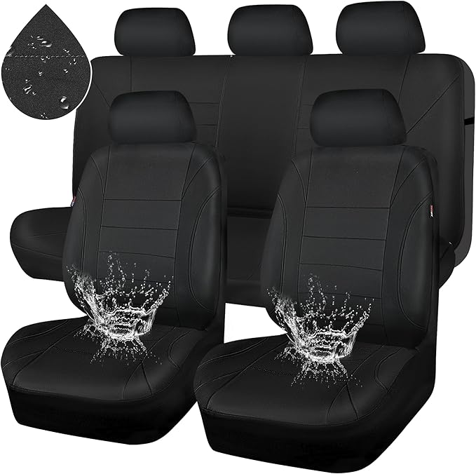 CAR PASS Neoprene Waterproof Seat Covers, Universal Fit Black Full Sets, Protective Interior Covers for Auto SUV, Vans, Sedans, Trucks