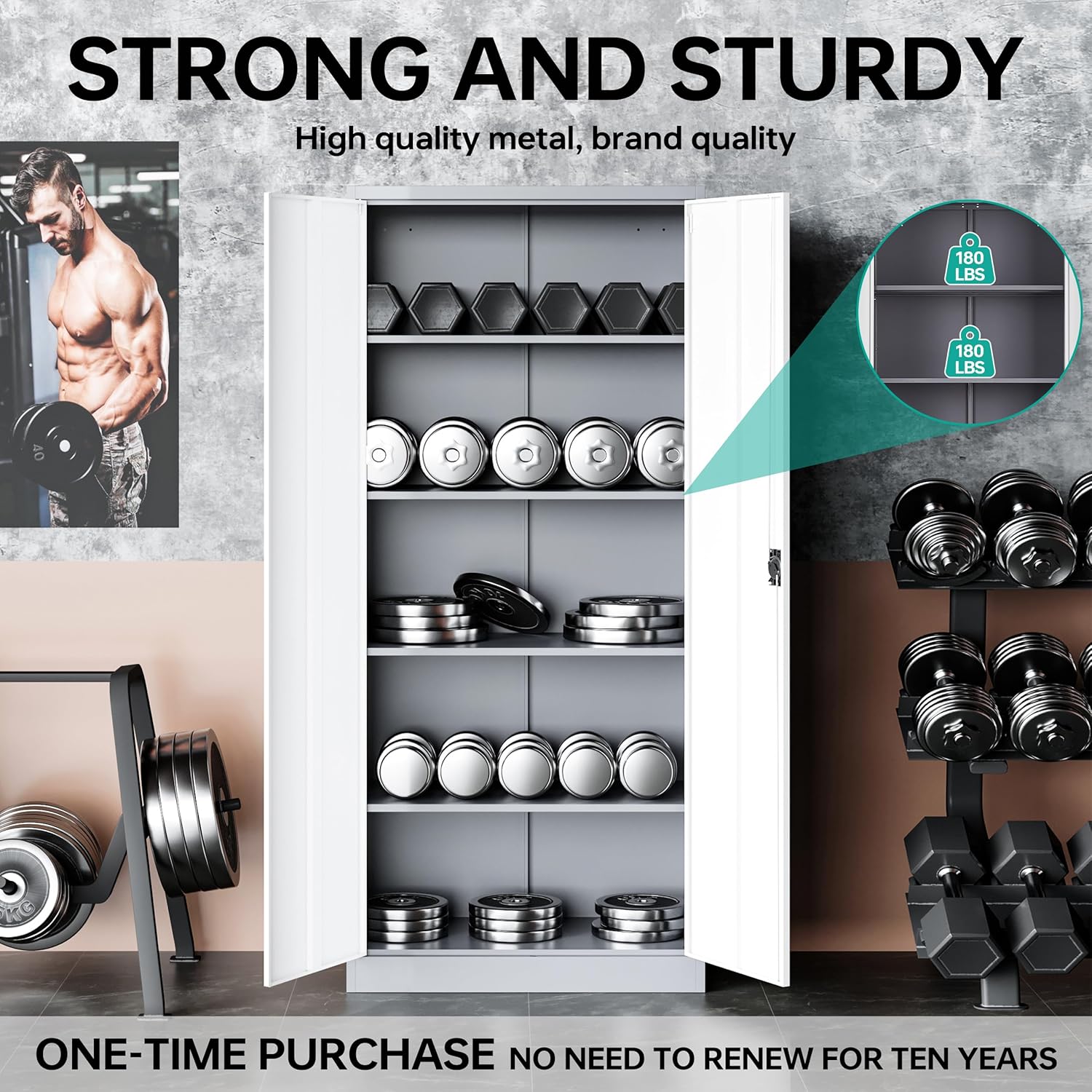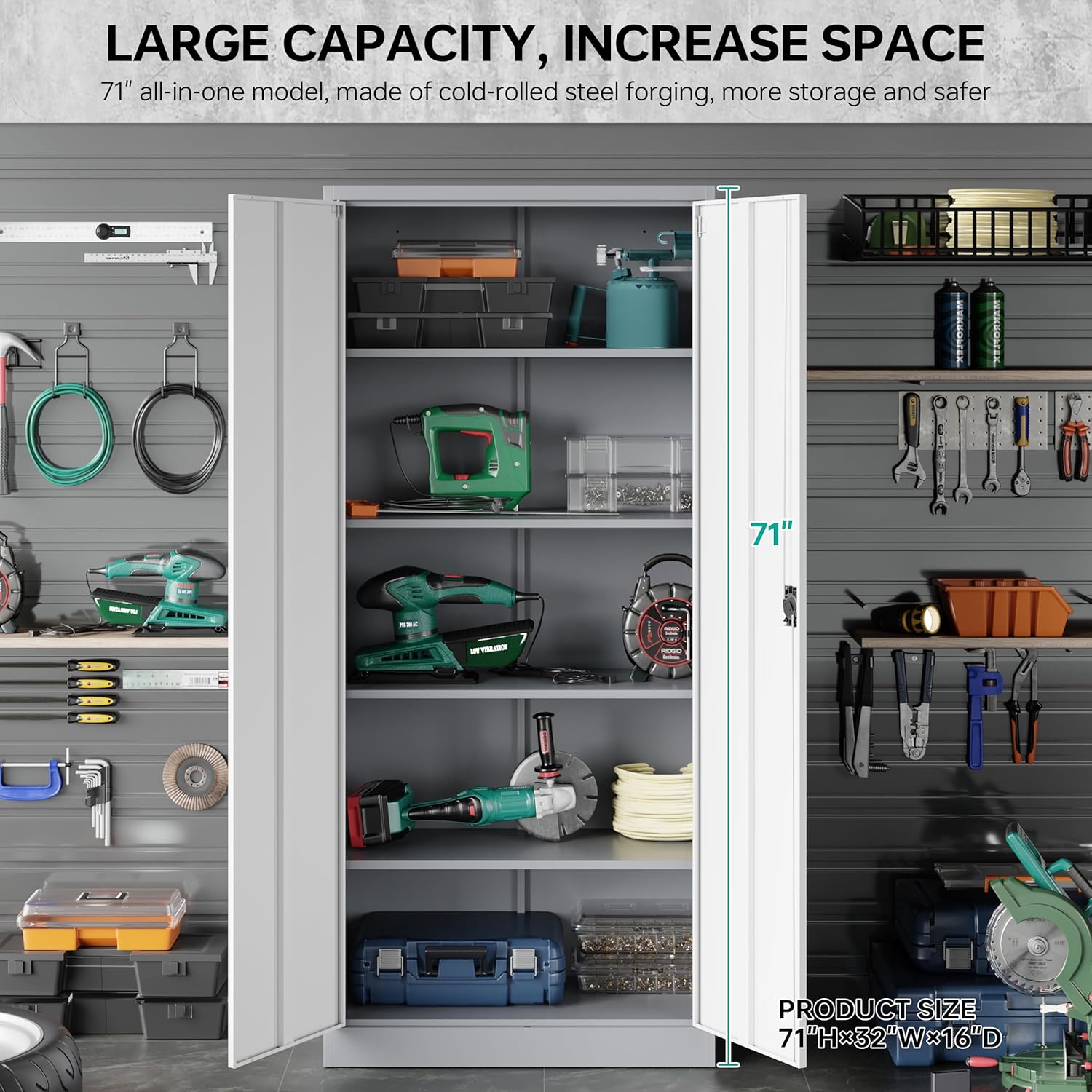 SISESOL Storage Cabinet with Doors and Shelves,71" Metal Storage Cabinet with Lock Door Adjustable Shelf, Steel Lockers for Office, Home,School,Kitchen,Garage Tool Utility Cabinet