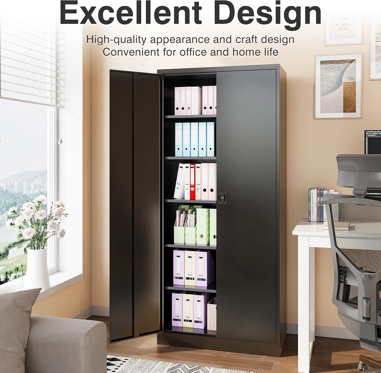 SISESOL Metal Storage Cabinet with 2 Doors and 6 Shelves,71" Lockable Garage Storage Cabinet,Black Metal Cabinets with Lock,Locking Steel Cabinets for Home,Office,Garage,Shop,School