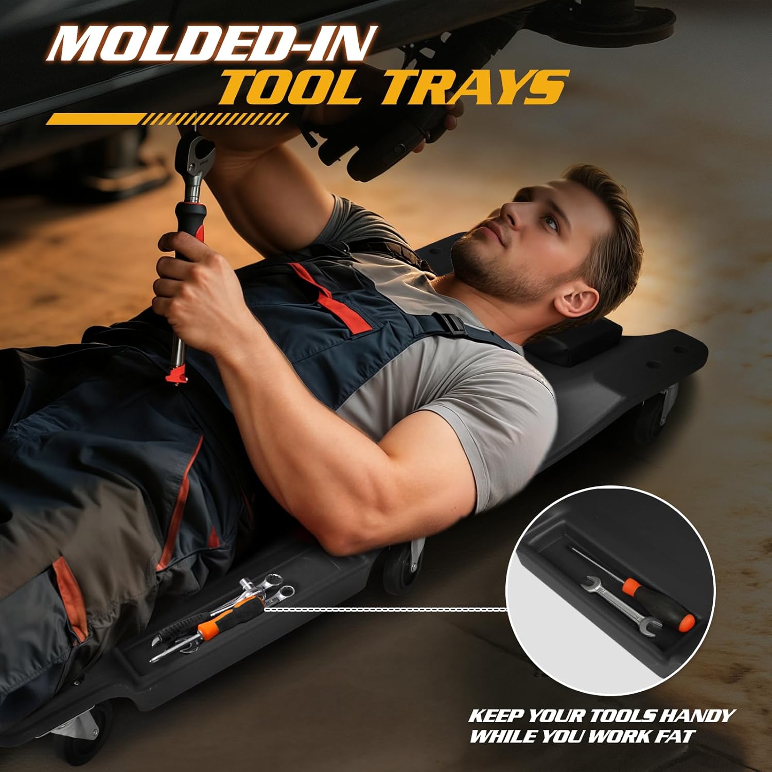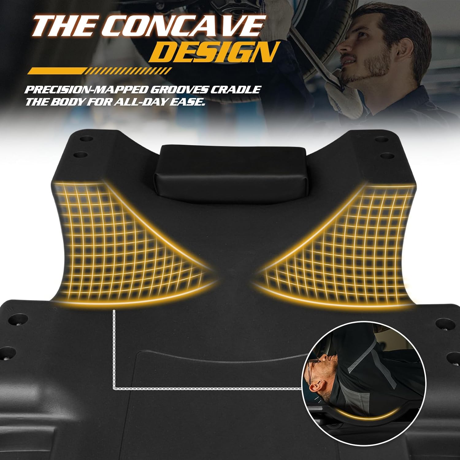- Ergonomic Design for Comfort and Support: Features built-in shoulder recesses and a padded headrest, providing extra support while working under vehicles. The contoured shape reduces strain on your back and neck during long repair sessions.
