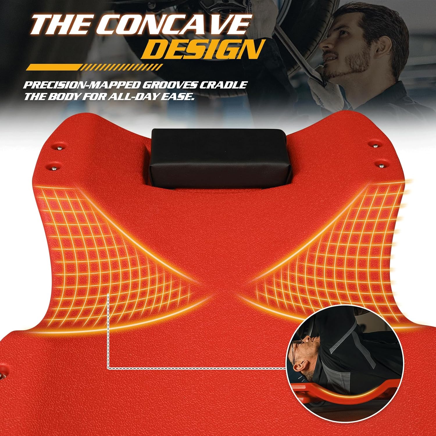 Magshion Rolling Garage Creeper with Padded Headrest, Shop Creeper 46.5" Mechanic Cart with Double Tool Tray and 6 Casters, Lightweight Floor Creeper Automotive Creeper - 440 lbs Capacity (Red)