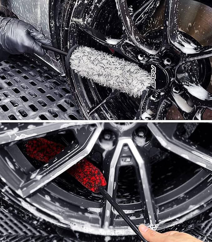 - Wheel Brushes for Cleaning Wheels: Our 360° bendable car rim brush has a diameter of 2.4"/6 cm. It effectively cleans various wheel shapes and spokes. Made from synthetic wool, it's gentle on delicate wheel interiors and retains its shape