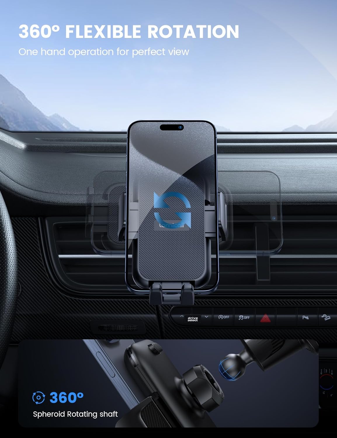 - 360-Degree Rotation: Unlike similar products on the market, this cell phone car holder gives you the best viewing angle no matter your needs, providing a 360-degree fully rotative design great for navigation, changing playlists, taking calls and more.