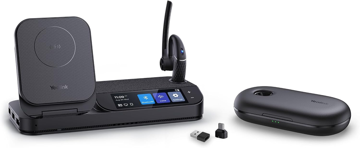 Yealink BH71 Workstation Pro Bluetooth Headset for Office Phone, Computer, Mobile, Work with Teams (Certified) Zoom, Charging Case, Wireless Charging Pad, Speakerphone, USB 3.0 Hub, 3-Inch Touchscreen