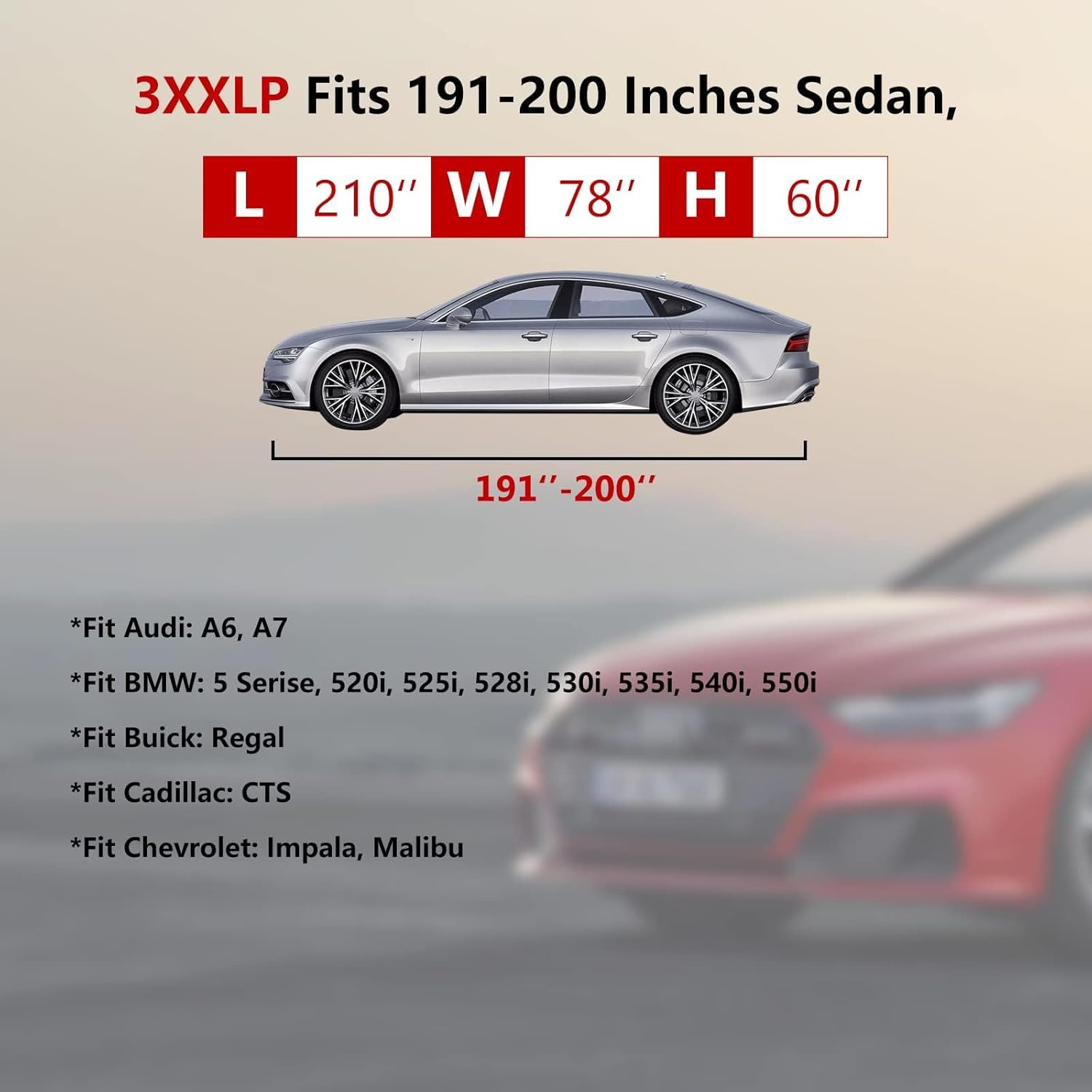 - COMPATIBLE SIZE: Tecoom 3XXL+ waterproof car cover fits 201"-210" length hatchback. Please check car details before ordering - hatchback coupe or SUV; date of manufacture; vehicle overall length.