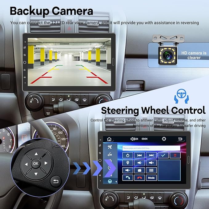 - 【Multi-Functions】1080P HD Video Playback / Bluetooth (Phonebook support, hands-free calling) / Steering Wheel Control / Maps / Music / FM Radio / GPS Navigation / EQ Audio / Compatible with Rear View Camera and Microphone.