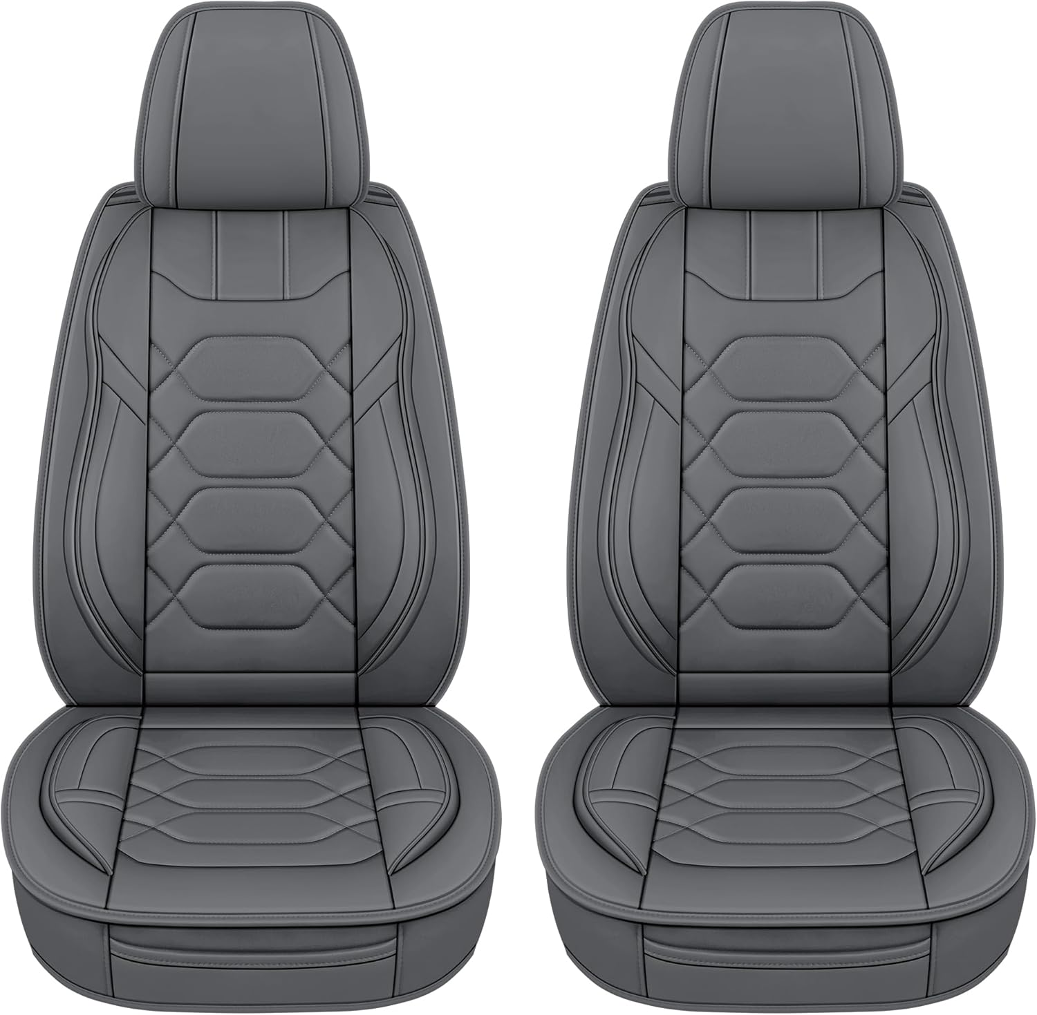 Pariitadin Leather Car Seat Covers Front Pair, Waterproof Breathable Faux Leather Automotive Seat Covers for Cars, Non-Slip Car Interior Covers Universal Fit Most Cars Sedans Trucks SUVs, Gray