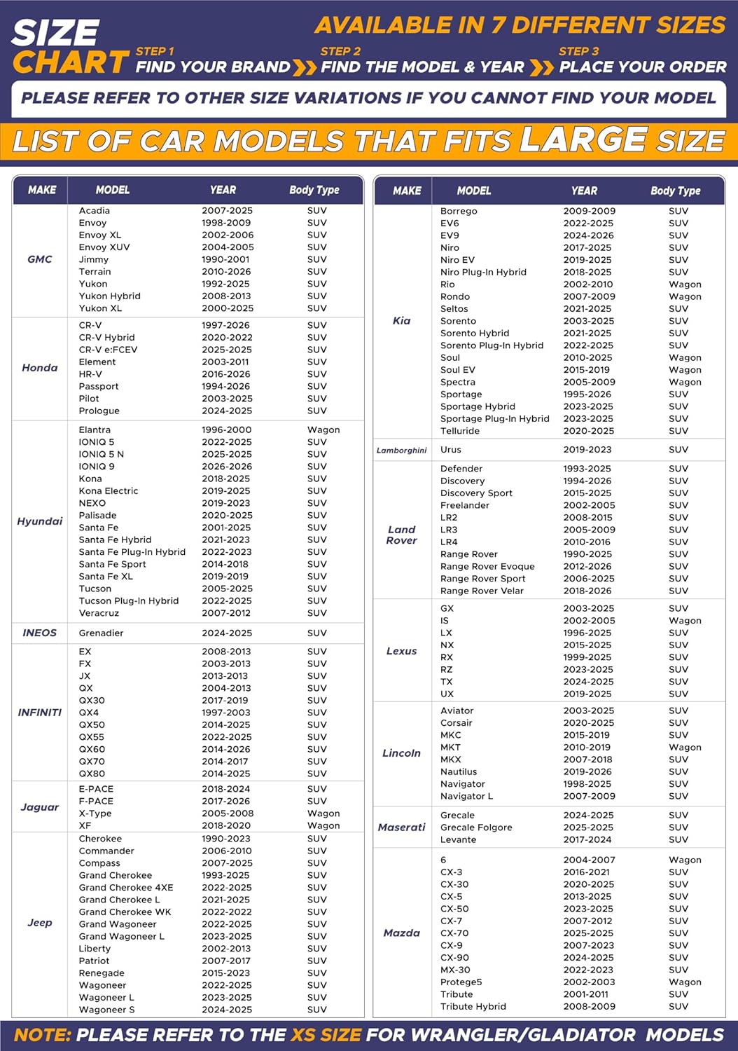 - Vehicle Service Type Mid SUV, Sedan, Truck : Material Polyester