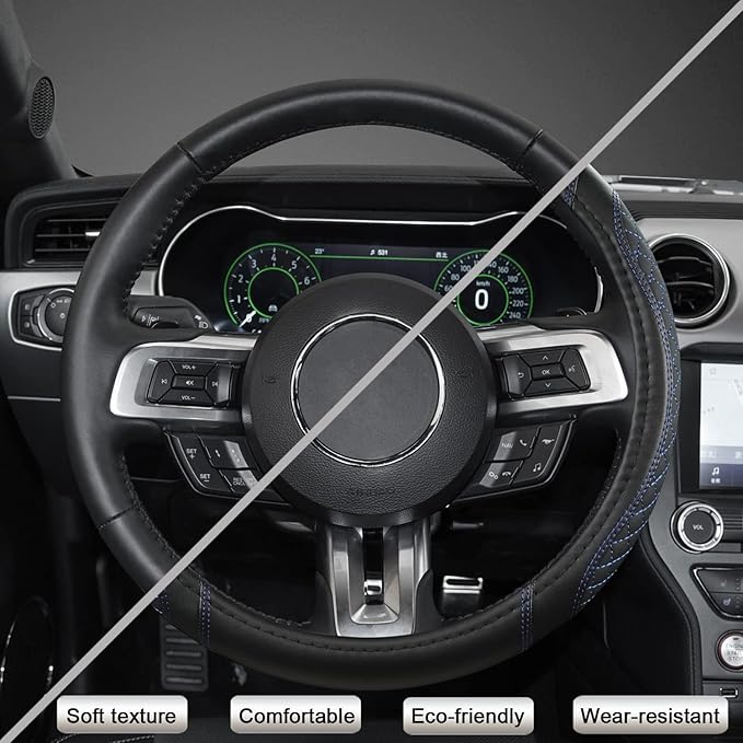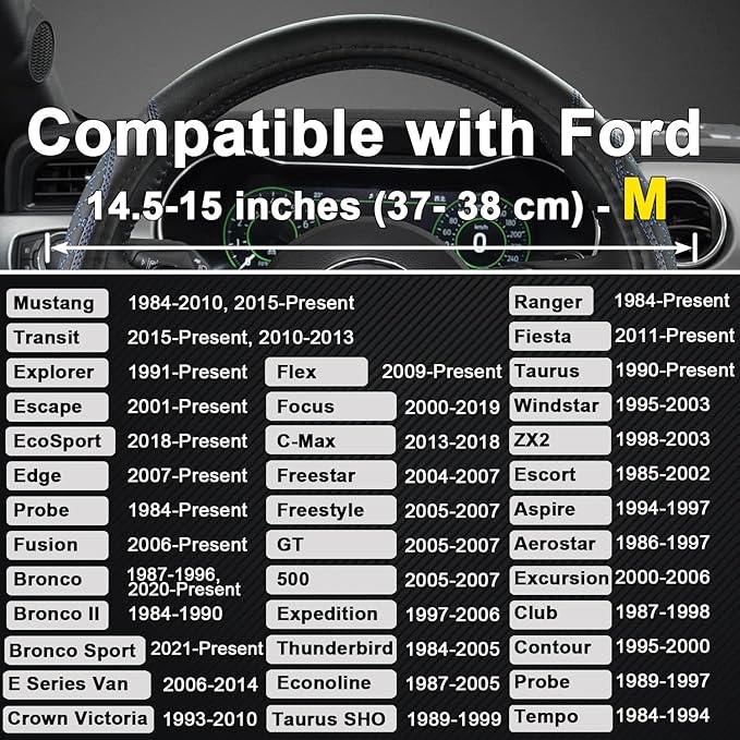 - 【HIGH QUALITY MATERIAL】This Ford steering wheel cover is made of high quality leather, which is soft texture, comfortable, eco-friendly, wear-resistant and durable.