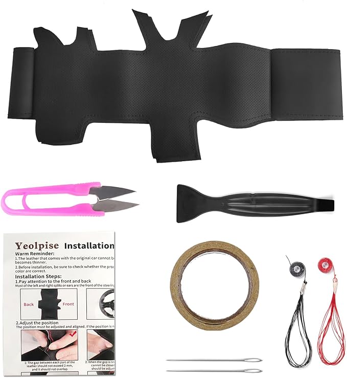 - 【Package】Includes 1 steering wheel cover, 2 needles, 2 threads, 1 double-sided tape, 1 edge stopper and instructions. For specific operation steps, please refer to the diagram and video. If you have any questions, please contact us.