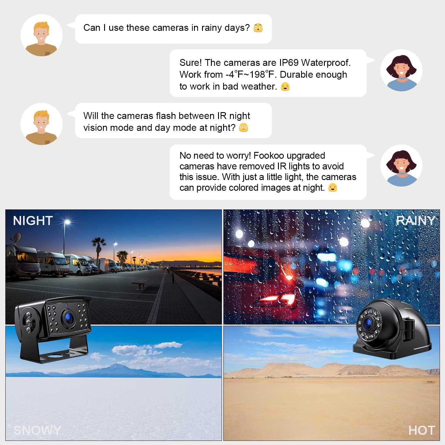 - Larger 10 inch Split Screen Monitor:Our 10-inch monitor has 1920x1080 pixels and features a Triple Split Screen that allows you see thress cameras at the same time and provides more details than the 7-inch / 9-inch screens commonly available on the market. It is more suitable for the large vehicles, such as: 5th Wheel Trailer/Tractor/RV/Truck/Bus/Trailer/Box Truck, etc.