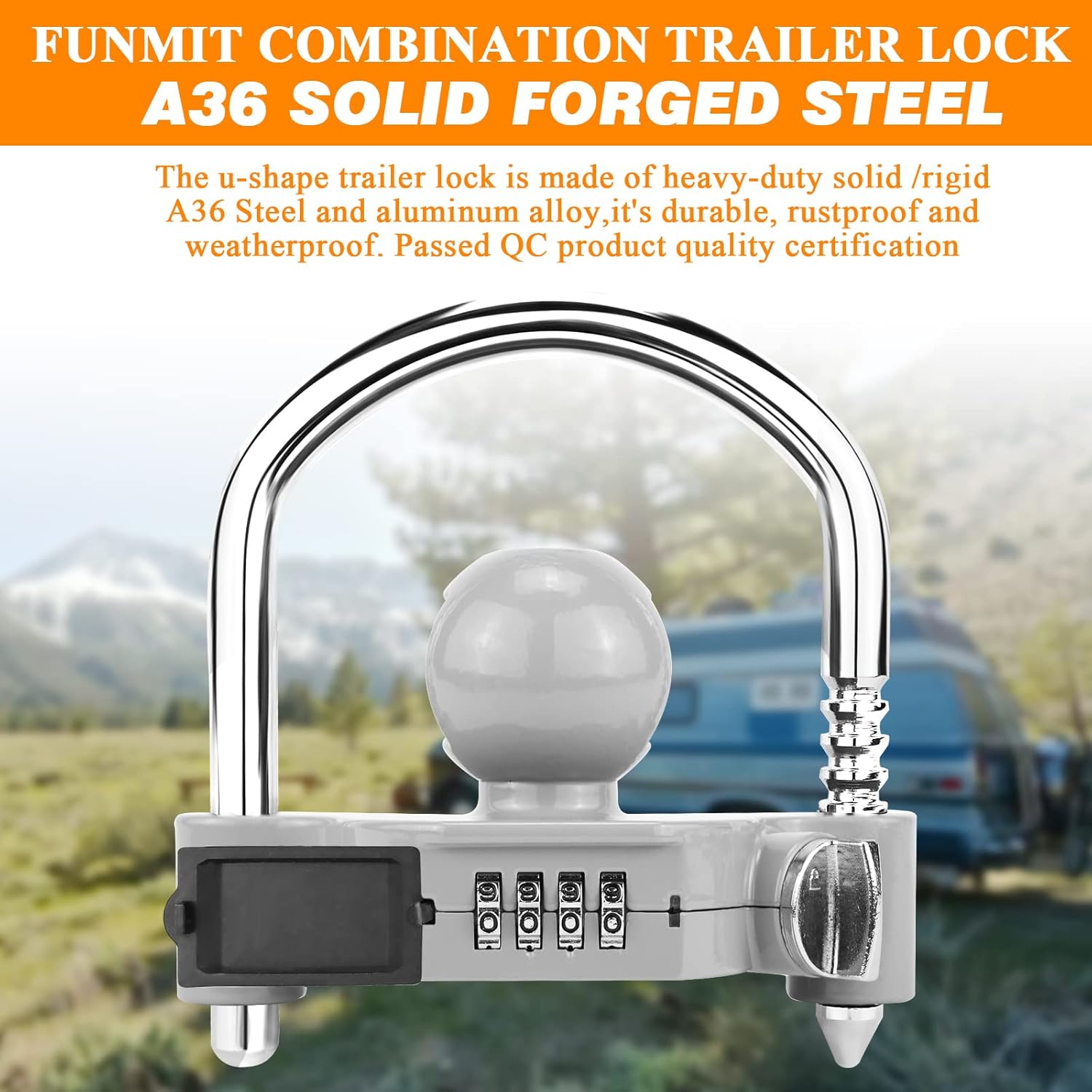 - HIGH-QUALITY MATERIAL: Our trailer locks are made of solid forged steel (A36 steel) and have passed International QC tests for durability and strength