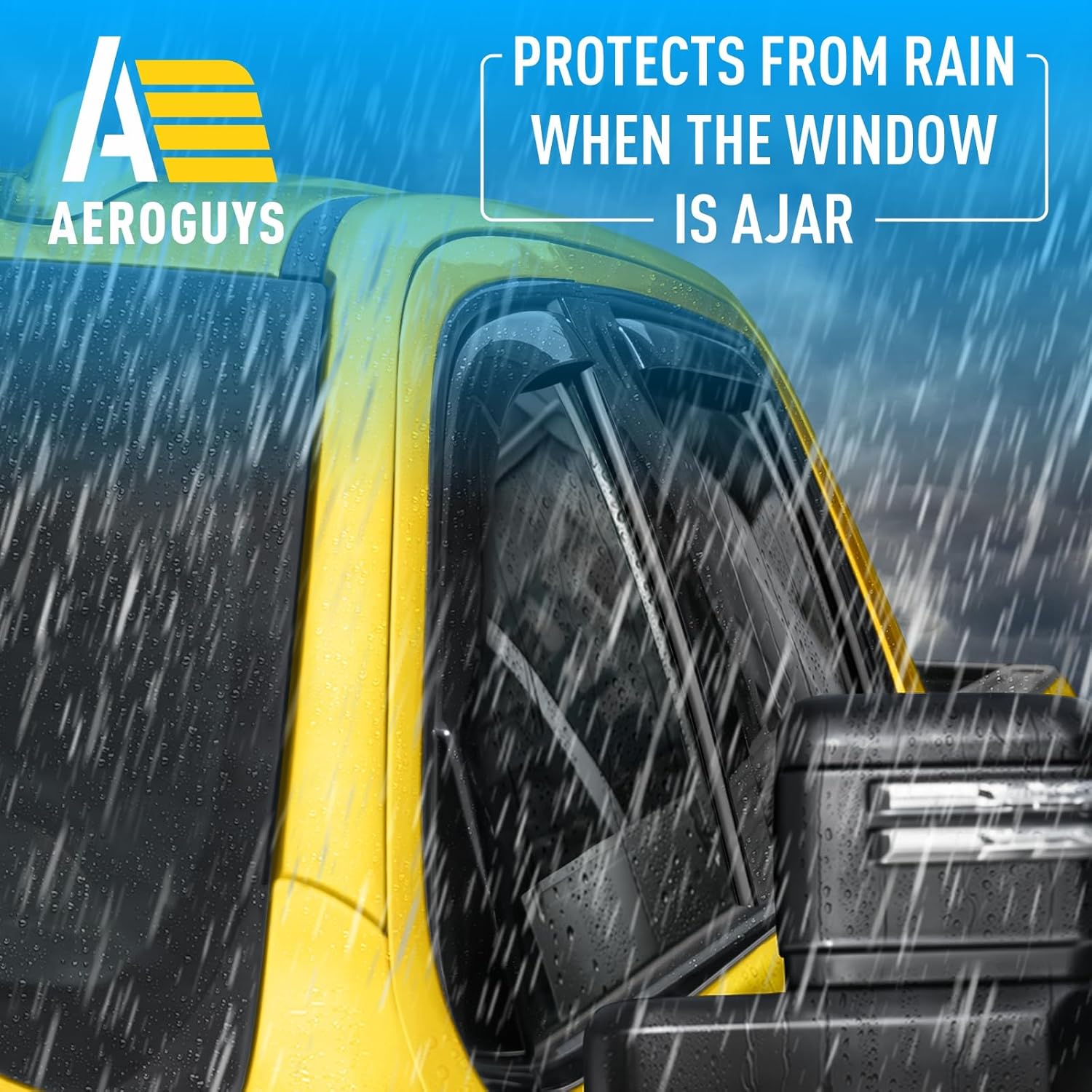 - Incredibly Durable AEROGUYS Auto Window Deflectors – They are made with strong and tough polycarbonate which is clear and scratch-resistant. They also provide UV protection making your ride more comfortable under all weather conditions.