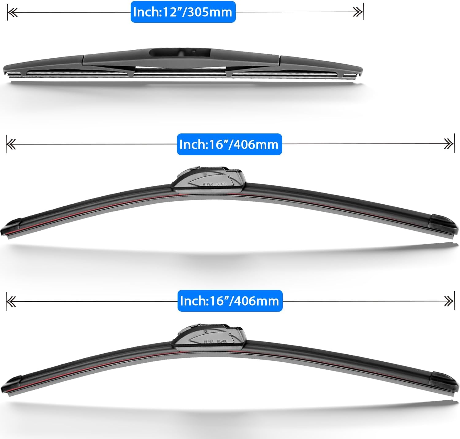 - {FITMENT}: Replacement for 2018 2019 2020 2021 2022 2023 Jeep Wrangler JL 16inch + 16inch front with 12inch rear windshield wiper blades.