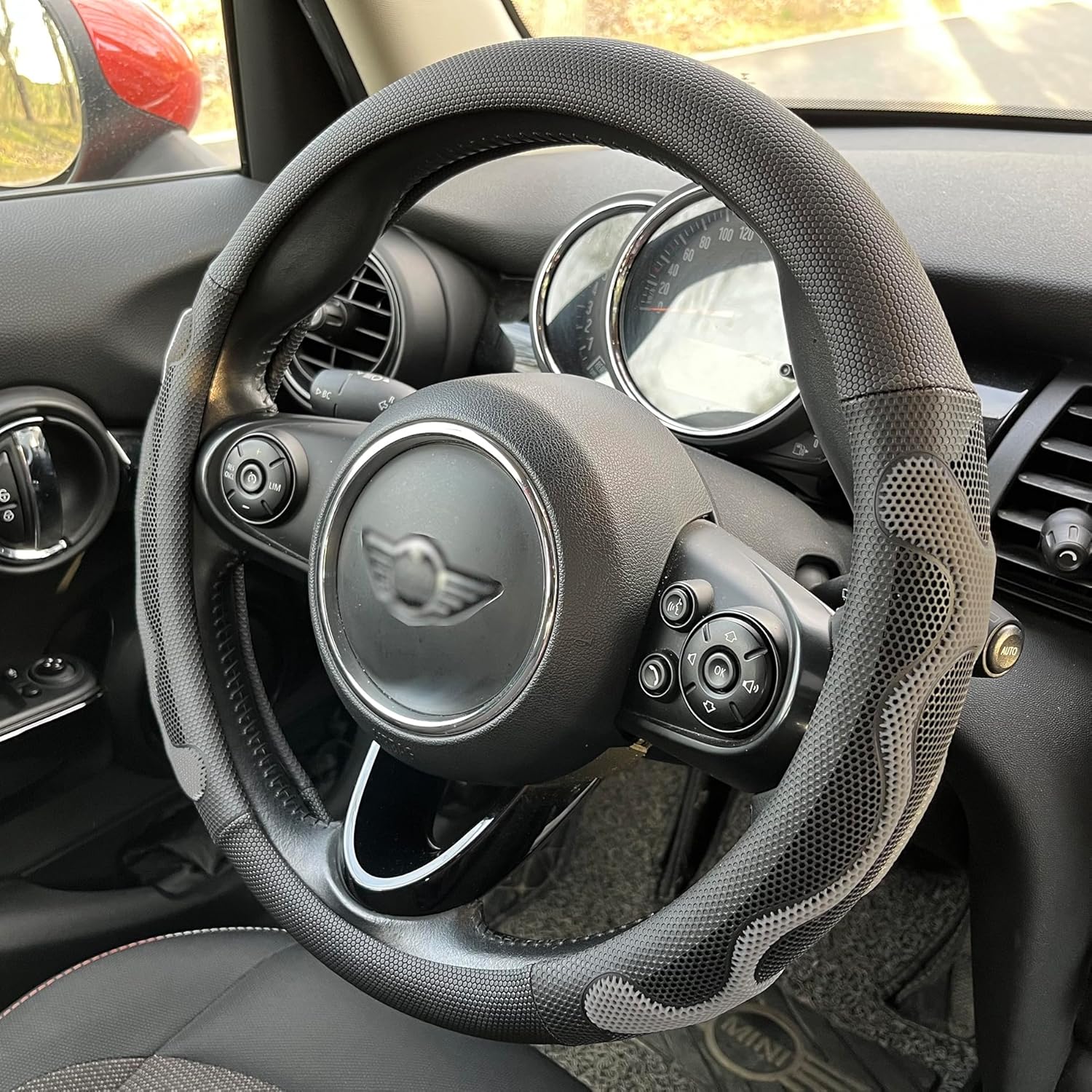 - Built to Last: Crafted with a solid rubber inner circle, textured microleather leather, and a 3D honeycomb silicone grip, this cover boasts a unique material combination that ensures exceptional durability. The silicone grip effectively relieving sweaty hands under hot weather. Enjoy a long-lasting and comfortable grip with PINCTROT car steering wheel cover.