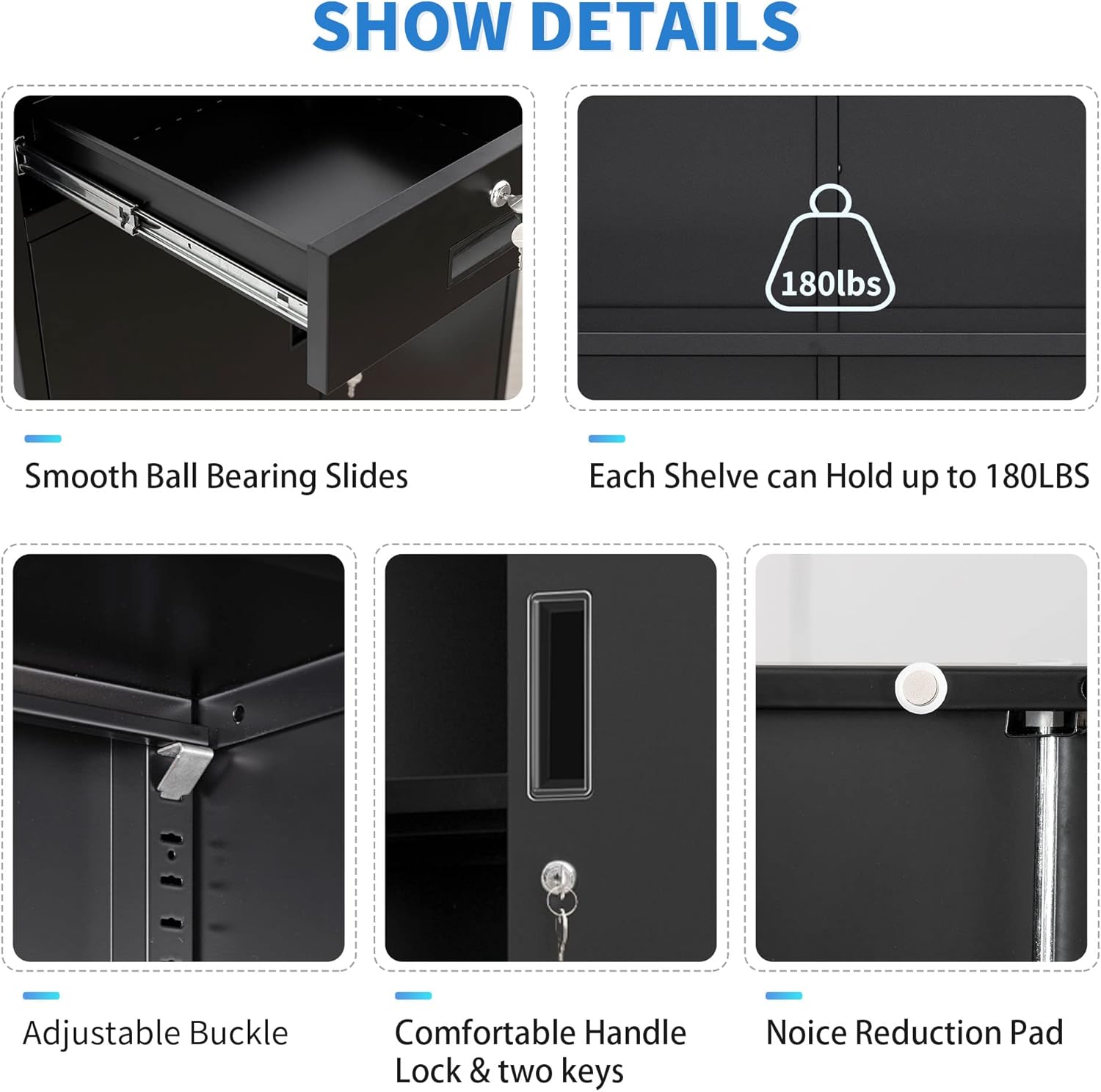 Metal Storage Cabinet, 36" H Locking Storage Cabinet with Two Drawers and Adjustable Shelf, Metal Cabinets for Office, Garage, Home-Black