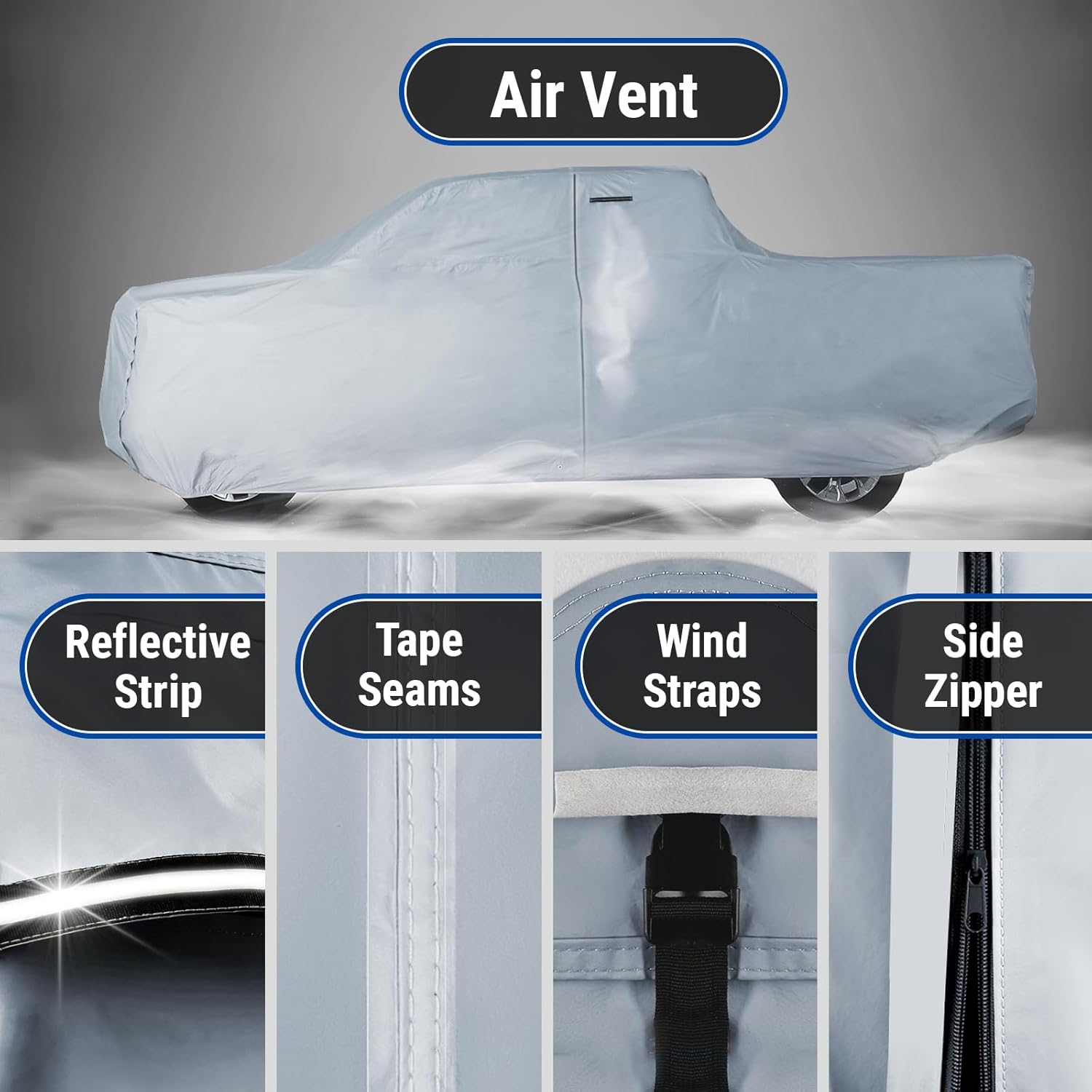 - SECURE YOUR VEHICLE WITH CONFIDENCE: Keep your car safe in all conditions. This cover comes with three heavy-duty straps that securely hold it in place during high winds, preventing it from shifting or flying off. You can trust it to protect your vehicle and give you peace of mind, even in tough weather.