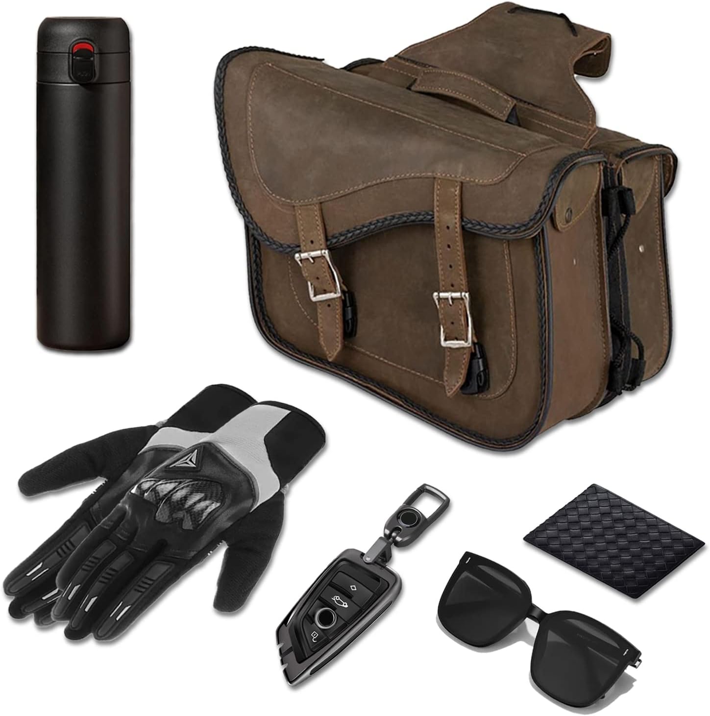 - 【Leather Material】This motorcycle saddlebags is made up of soft and durable heavy-duty leather. The reinforced sewing and moderate thickness make our motorcycle saddle bag can always keep its shape and longer service life.