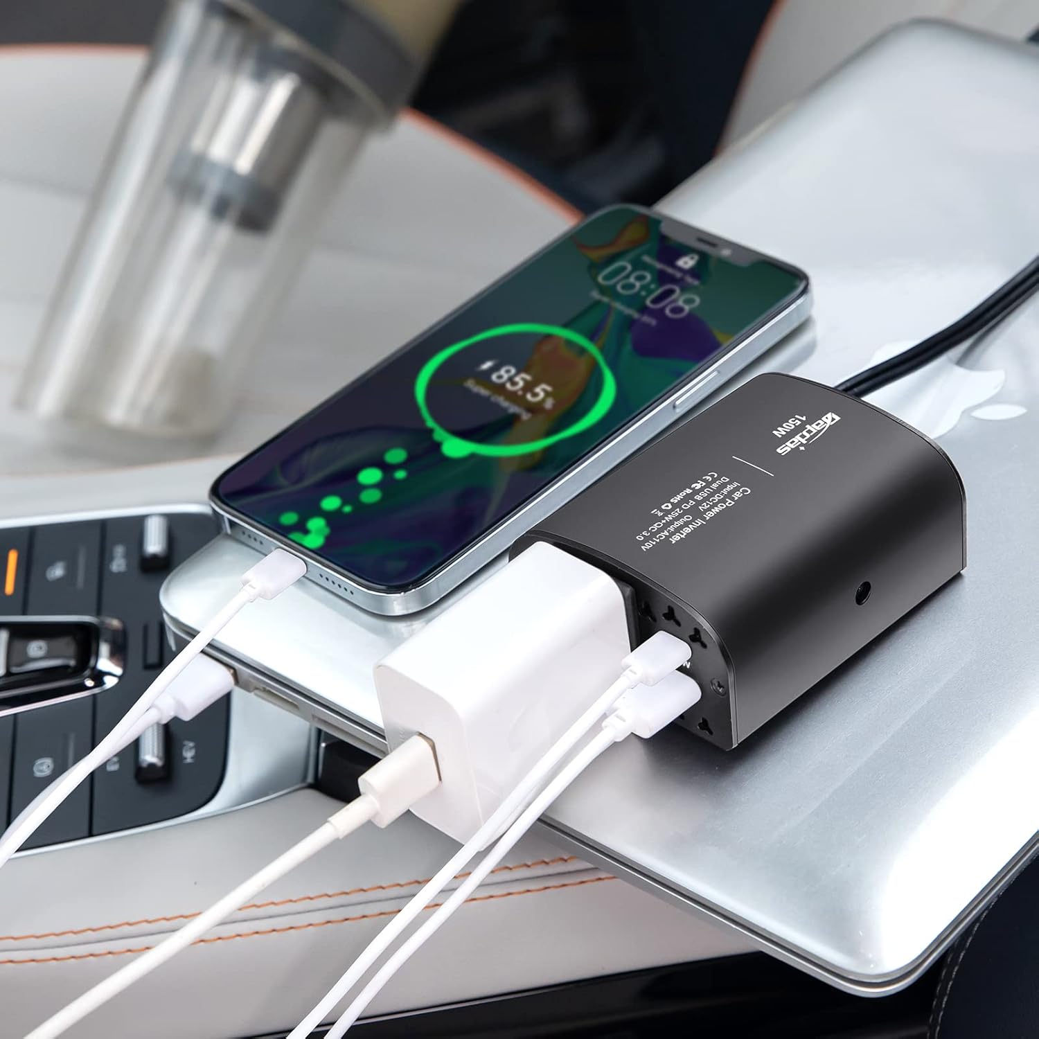 150W Car Power Inverter DC 12V to 110V AC Car Outlet Adapter with PD 25W &QC3.0 USB Ports Laptop Car Charger