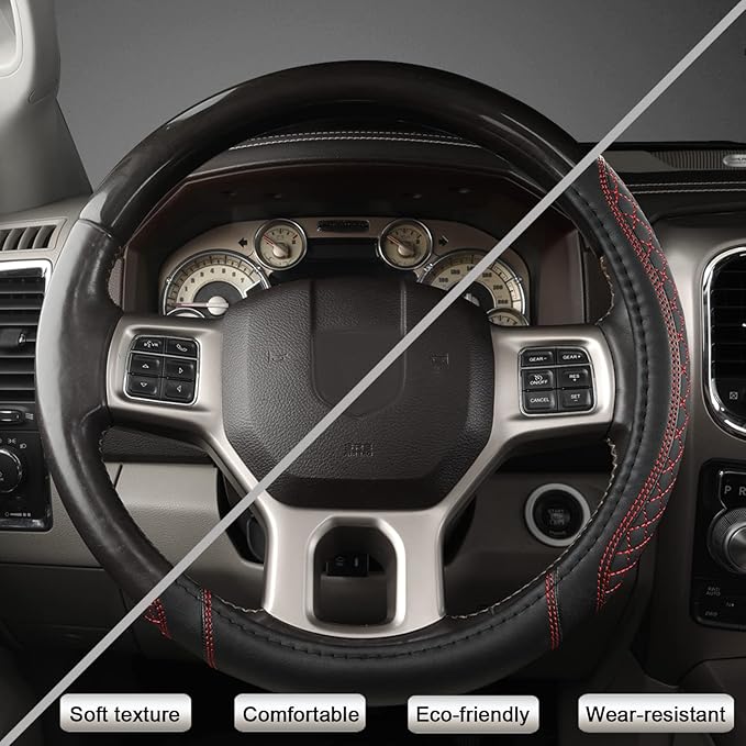 - 【HIGH-QUALITY MATERIAL】 This Ram steering wheel cover is made of high-quality microfiber leather, which is soft texture, comfortable, eco-friendly, wear-resistant, and durable.
