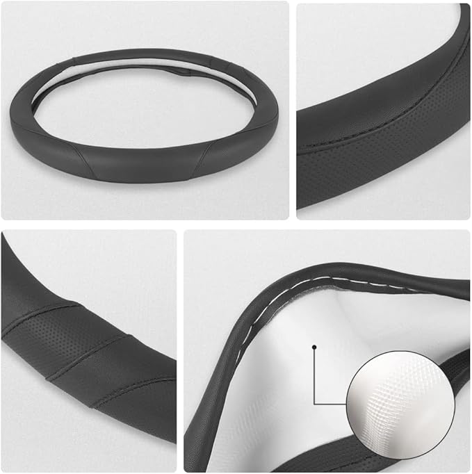 - 【SAFE ANTI-SKID DESIGN】 The inner ring of these steering wheel covers is made of natural rubber and with non-slip design, which improves the grip and improves the control of the steering wheel for safer driving.
