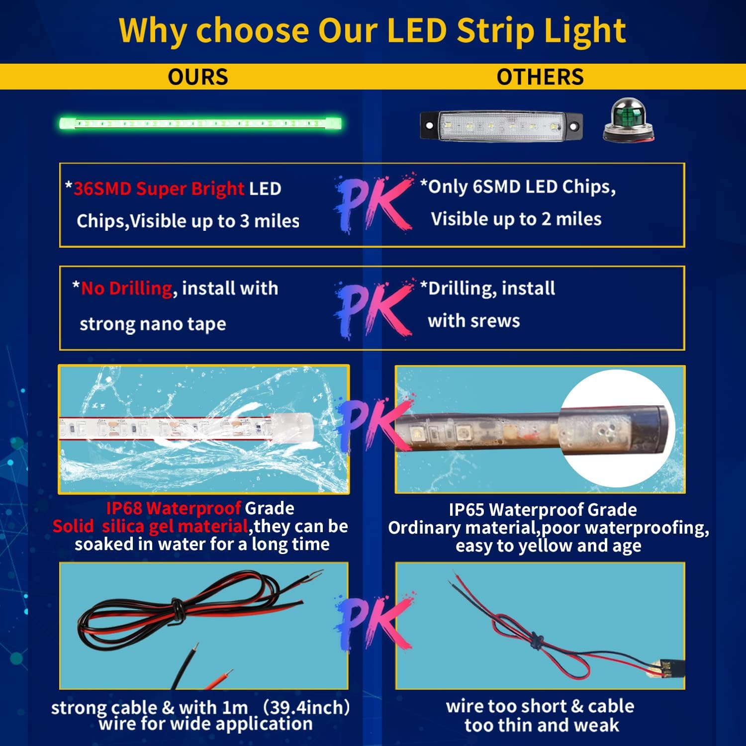 - 【Super Bright】Our Boat Navigation Lights is made of Pure solid silicone Material and super bright chips,high luminous efficacy, Long lifespan >50,000 hours,UL approved, it won't get too hot even it works long time.the brightness is very safe for driving at night.
