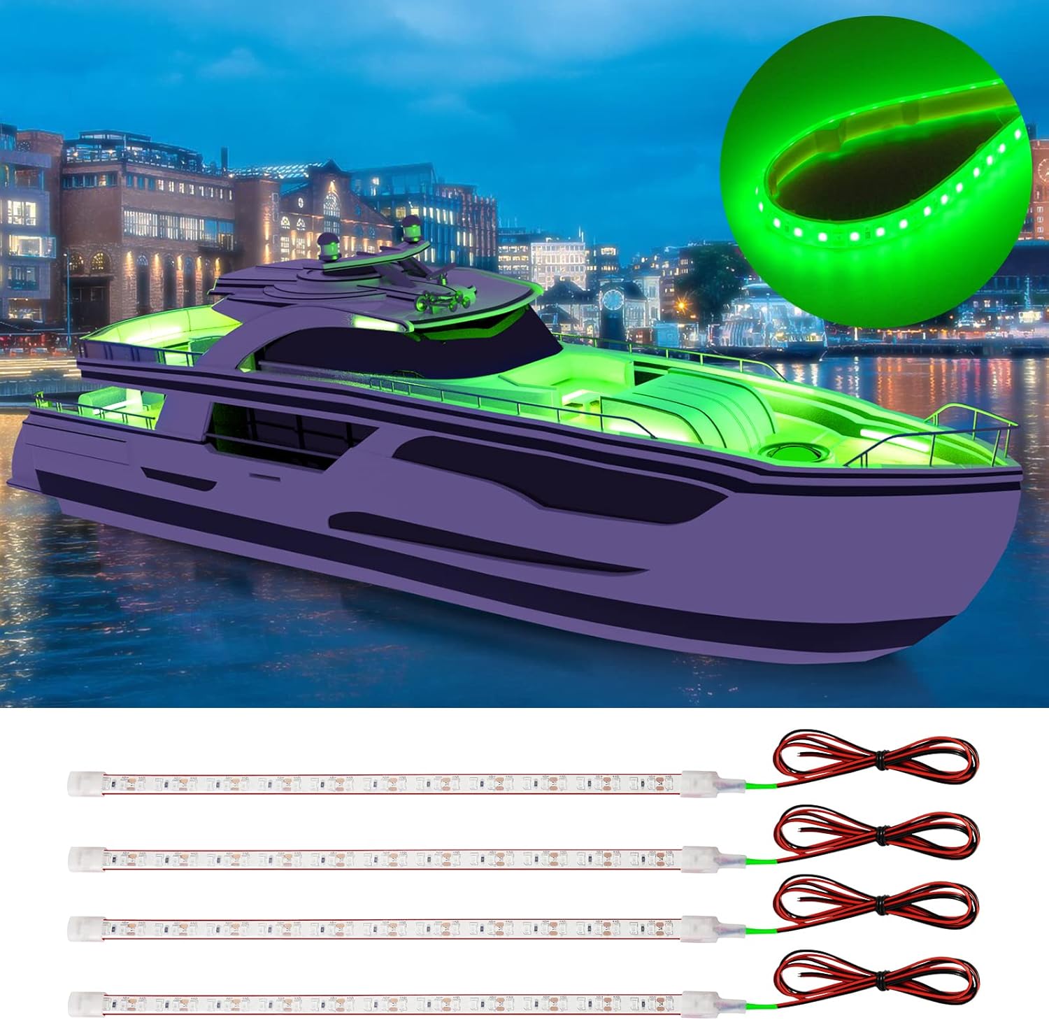 Boat Led Strip Light,12V Waterproof Marine Boat Interior Courtesy Deck Navigation Lights Cuttable for Car Motorcycle RV Truck Trailer Kayak Home with Strong Nano Tape Green,12inch (Pack of 4)