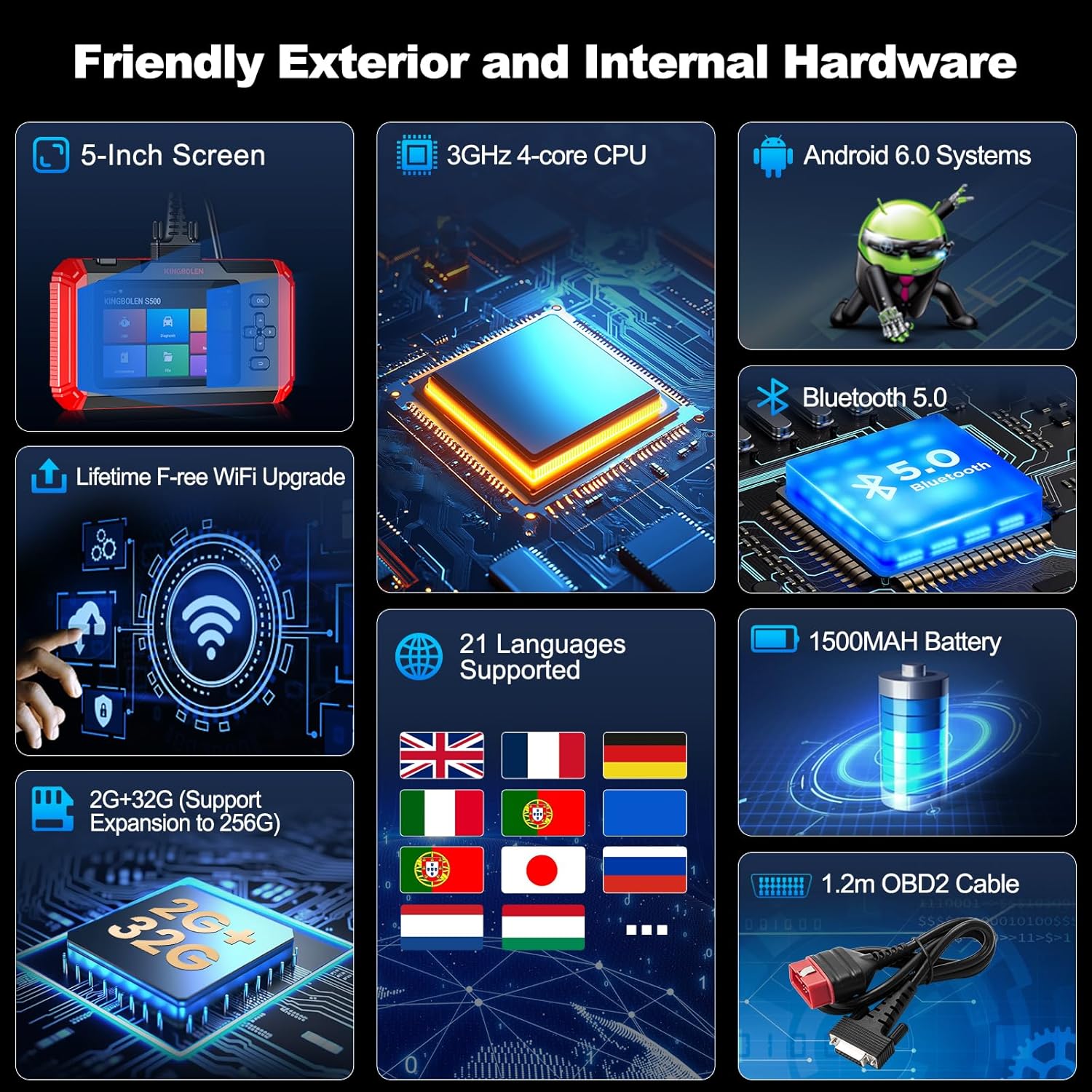 - đ ă5-Inch Touch Screen and 2+32GB BIGGER memoryăKINGBOLEN S500 diagnostic tool is equipped with 5ââ gorilla glass touch screen. Compared with other brand scan tools, S500 code reader is more wear-resistant and scratch-resistant. Comes with 2GB ROM to ensure the software runs fast, and 32GB internal memory offers enough space to download more car modules and newest Reset. The S500 is NOT apply to all car models, if you are confused, please send your Car Brand, Model and Year to seller to check