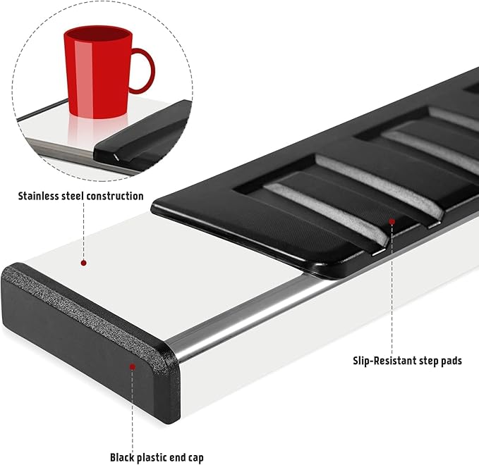 - Quality Detail - Made With the high quality Anti-Corrosion Mirror Stainless Steel and Anti-Slip Plastic Pads. Each side can support up to 450 lbs. Give you the entirely security from your car to the ground.