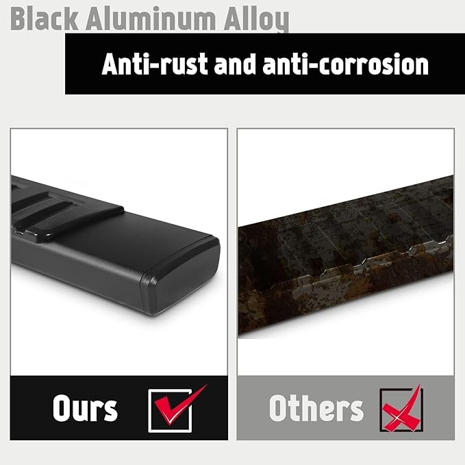 - Quality Detail - Made With the high quality Anti-Corrosion Black Aluminum Alloy and Anti-Slip Plastic Pads. Each side can support up to 450 lbs. Give you the entirely security from your car to the ground.