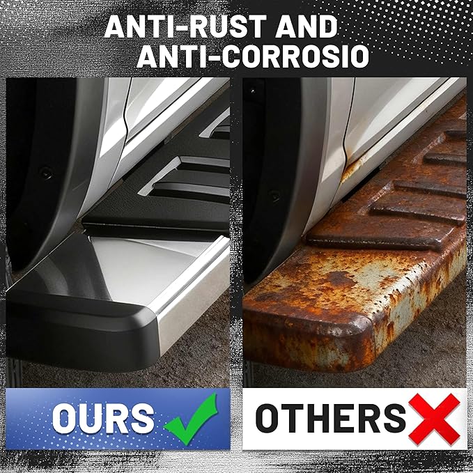 - Quality Detail - Made with the high quality Anti-Corrosion mirror stainless steel and Anti-Slip plastic pads. Each side can support up to 500 lbs.Give you the entirely security from your car to the ground.