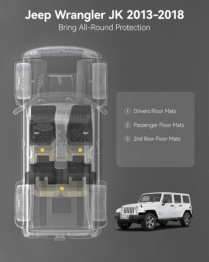 - Material Thermoplastic Elastomer (TPE) : Vehicle Service Type Jeep Wrangler JK 2013-2018