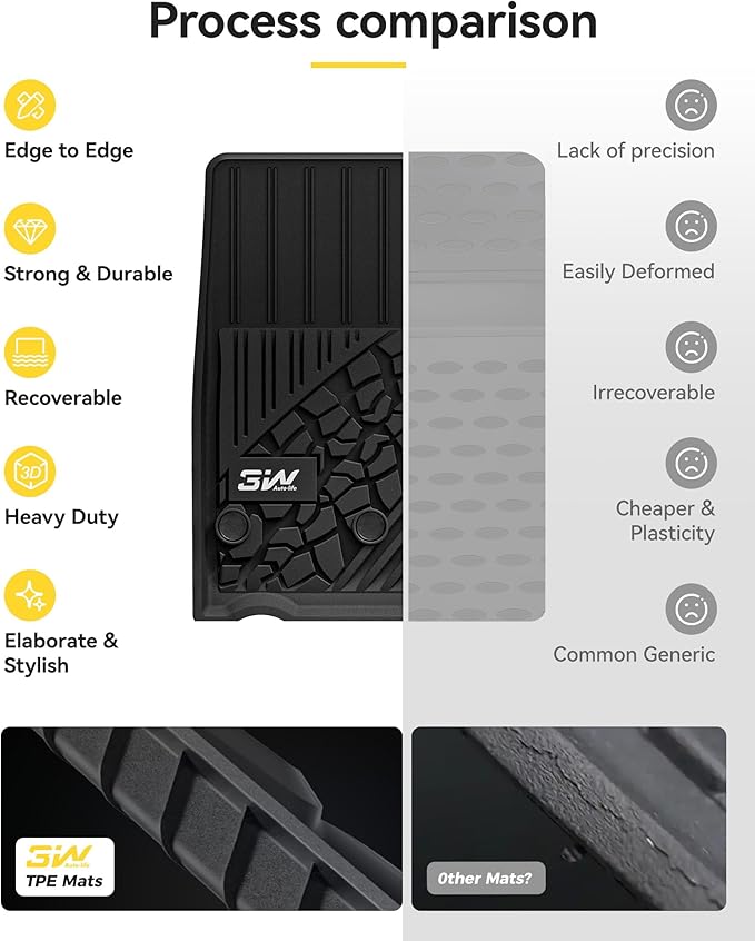 - DURABLE QUALITY: With durable and heavy-duty TPE material which is comfortable and thick, will prevent spills or messy cargo from leaking into your original factory mats, keep your carpet always like new look