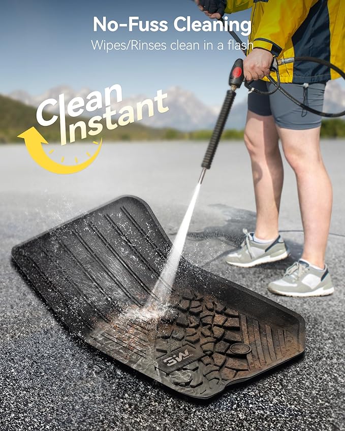 - EASY TO CLEAN: Our floor mats are easy to clean. No matter with dust, mud or slush on the mats, just take several minutes wash off liners with water hose or damp towel.