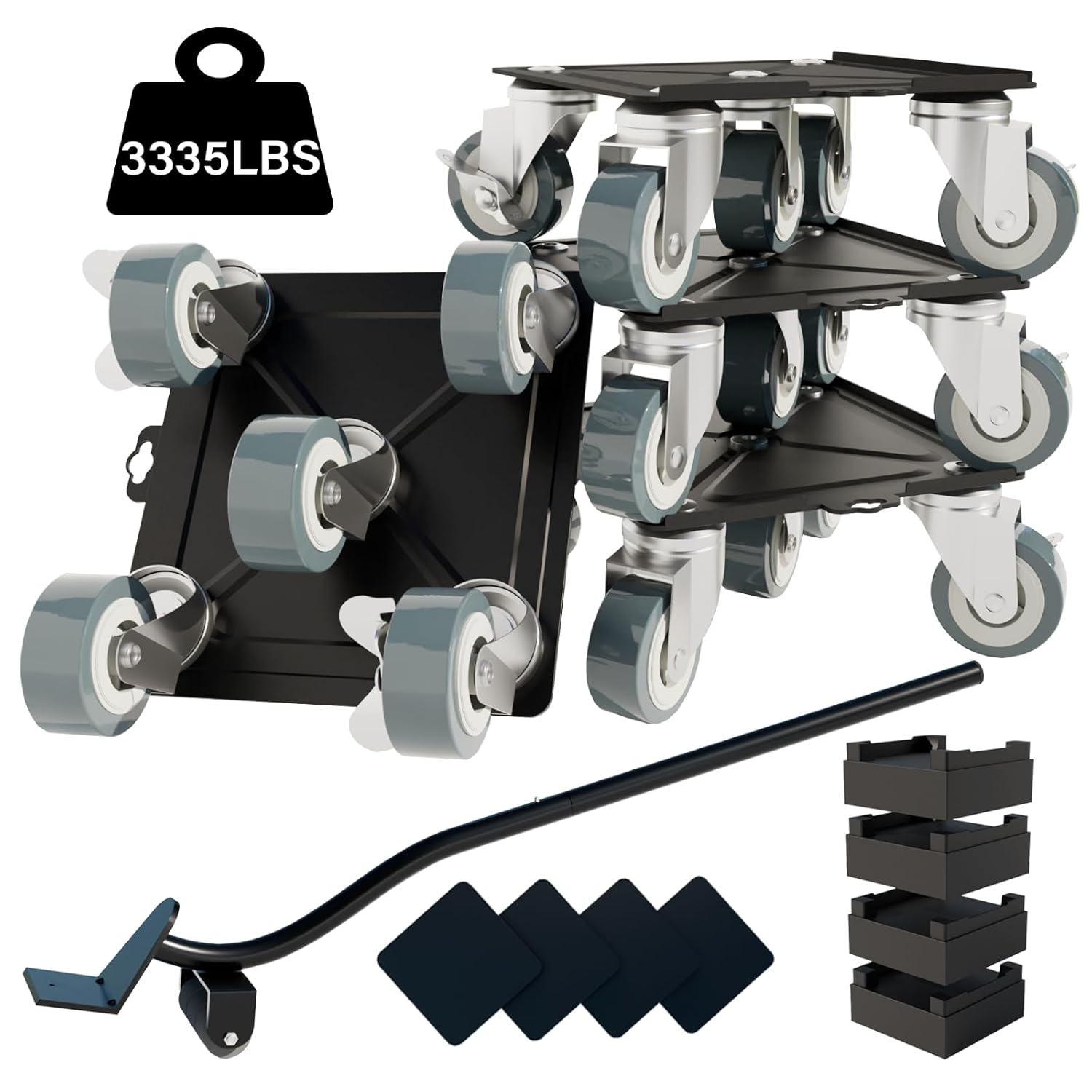 - High Material Furniture Dolly: It is absolutely the first consideration to ensure that the furniture and floor are not damaged. The furniture lifting crowbar is made of durable steel, and has a non-slip design. The surface of the 4 sliding rails is made of thickened carbon steel, which will not damage the furniture. Each slide is inlaid with 5 360° Rotation Wheels universal wheels, a total of 20 universal wheels, flexible and durable, up to 3335 lbs load-bearing, it will not damage the floor.