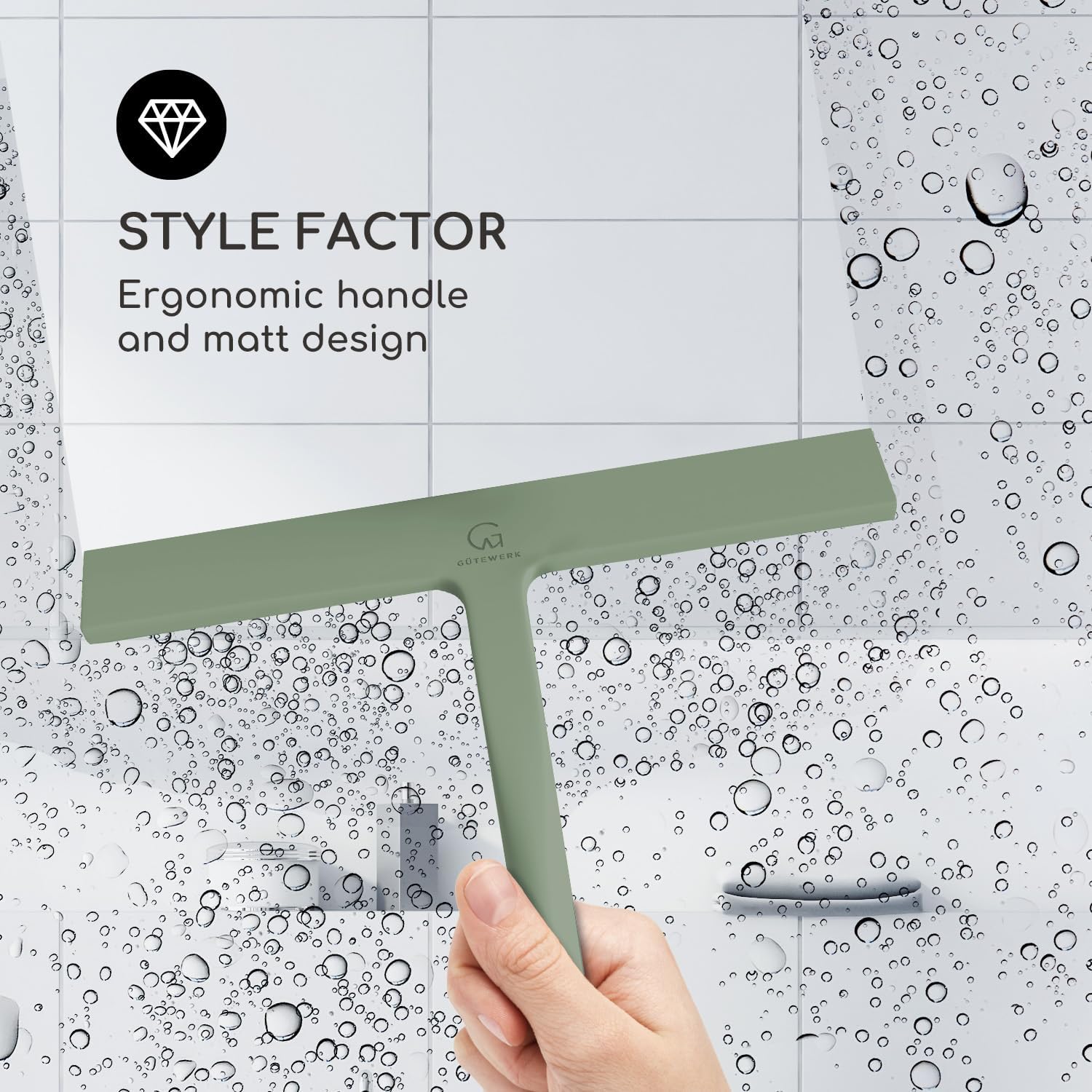 GÜTEWERK Shower Squeegee for Glass Doors, Silicone Window Squeegee, Bathroom and Glass Cleaning - Green - 9 Inch