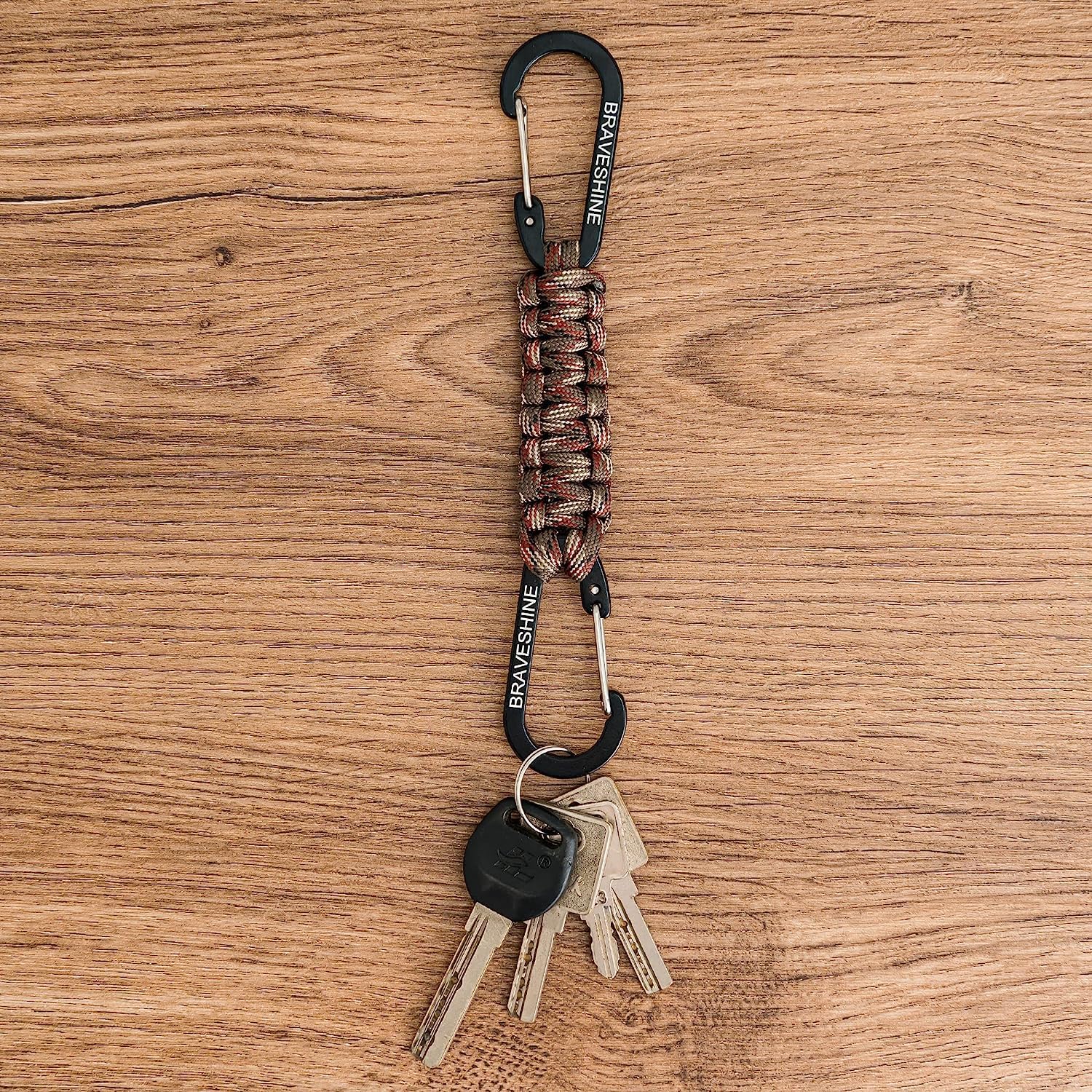 BRAVESHINE Paracord Keychain Carabiner Clip, D Ring Lanyard Hanger Stroller Hook for Water Bottle, Key, Backpacks, Men, Women
