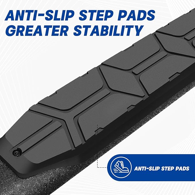 - MATERIAL: The Step Bars Made with Heavy-Duty Carbon Steel. The Surface of The Step Bar Is Rust-proof Dual-stage Textured Black Powder. This Is More Rust-proof and Sturdier Than Ordinarily Crafted Steps. Maximum Load Capacity 450LBS.