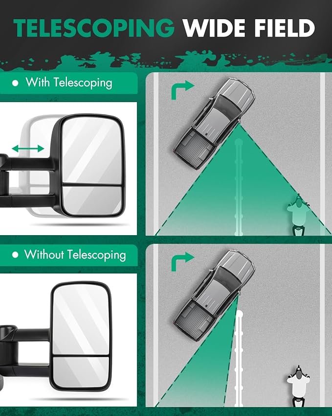 SCITOO Tow Mirrors Compatible with 1988-1998 for Chevy for Silverado for GMC for Sierra 1500 2500 3500 Truck Black Towing Mirrors with Power Left Right Side