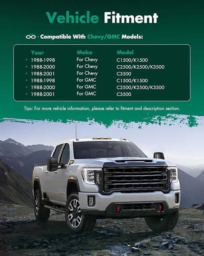 - đ ăTOWING MIRRORS FITă- Fit For 1988 1989 1990 1991 1992 1993 1994 1995 1996 1997 1998 For Chevy/For GMC C/K 1500, For 1988 1989 1990 1991 1992 1993 1994 1995 1996 1997 1998 1999 2000 For Chevy/For GMC C/K 2500/3500,1992 1993 1994 1995 1996 1997 1998 1999 For Chevy/For GMC C/K 1500/2500 For Suburban/Tahoe/Yukon,2000 For Chevy/For GMC Tahoe/Yukon for V8 5.7L